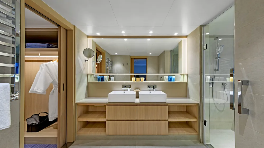 After a lifetime spent living in hotels, our Chairman wanted to ensure every detail of our ships was elegantly functional. So we designed easy-to-read and -open premium bath products; intuitive remote controls; large showers with strong water pressure and clear controls; anti-fog mirrors and heated floors.