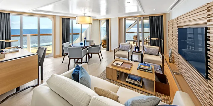 - Stateroom size: 1,448 sq ft multi-room suite including expansive private veranda